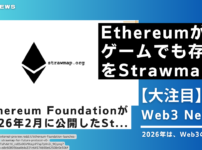 新着Web3ニュース 【Web3】Ethereumがゲームでも存在感を出すための「Strawmap」とは 内容 Ethereum Foundationが2026年2月に公開したStrawmapは、ゲーム分野で露呈したイーサリアムの性能課題(遅延・高手数料)への対応を明確に示した草案的ロードマップである。 初期の代表例であるCryptoKittiesは可能性を示した一方、当時のL1性能がゲーム用途に不十分であることも明らかにした。 Strawmapは、トランザクション確定時間を「分」から「秒」へ短縮し、ゲームプレイの即応性と没入感を大きく改善することを目標としている。 スケーリング強化とレイヤー2 ... 【Web3】Web2からWeb3への「Playnance」が、新たな発表 内容 Playnanceは「Be The Boss」プログラムを通じ、累計200万ドル超の法定通貨支払いを達成した。 現在のアクティブなボス数は2,809人で、エコシステム全体の拡大を反映している。 これまでに総収益530万ドル以上を生み出し、実需に基づく経済活動が進展している。 インフラは1日約150万件のオンチェーン取引と1万人超のDAUを支えている。 反応・補足 Be The Bossは投機モデルではなく、実際のプラットフォーム利用に直結した構造レイヤーとして設計されてい ... 【Web3】最近の「PEPE」事情を、1分で簡単解説 内容 PEPEはイーサリアム上で動作するミームコインで、価値は主に話題性と市場センチメントに依存する。 固定供給・完全流通済みのため、価格上昇は需要次第で持続性は低い。 長期的な実需やプロダクト成長がなく、2030年までの長期保有は高リスク。 一方で流動性と出来高は高く、短期〜中期の取引対象としては成立する。 反応・補足 価格はミームコイン市場全体の資金流入・流出に強く連動する。 移動平均線やRSI、サポート・レジスタンスが比較的機能しやすい。 市場 ... 【Web3】暗号通貨支払い可能な「Mastercardカード」を米国で本格展開 内容 MetaMaskは、Mastercard対応の決済カードを米国で本格展開し、ニューヨーク州でも初提供を開始。 親会社のConsensysは、2024–25年の試験運用を経て全米一般利用が可能になったと発表。 提供地域は、米国に加え、アルゼンチン、ブラジル、カナダ、EEA、メキシコ、スイス、英国へ拡大(例外はバーモント州)。 発行は規制対象のMonavate(旧Baanx)とMastercard網の連携で、Cross River Bankが担当。 反応・補足 世界1.5億超 ... 【Web3】イーサリアム財団の将来の方向性を、1分で簡単解説 内容 イーサリアム財団は、2029年までの進化像を示す非拘束の草案「Strawmap」を公開し、将来の方向性を示した。 中核目標は①ほぼ即時のファイナリティ②高スループット③ネイティブなプライバシー④量子耐性セキュリティ⑤L2との緊密統合の5点。 現在約16分かかる最終性を、将来的に6〜16秒へ短縮する構想が議論されている。 これにより、取引所・ブリッジ・金融アプリのUXと資金移動効率が大幅に改善される。 反応・補足 L2一辺倒から、強化されたL1+用途特化L2という「二重スケ ... おすすめ記事 NFTを買う『3STEP』 STEP1:仮想通貨に両替 続きを見る STEP2:ウォレット作成 続きを見る STEP3:NFT選んで購入 続きを見る 評判記事 NFTの買い方 続きを見る Coincheckの口座開設方法 続きを見る Coincheckで仮想通貨購入 続きを見る author