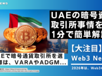 新着Web3ニュース 【Web3】Solana対応AI「ロブスター・ワイルド」を、1分で簡単解説 内容 ロブスター・ワイルドは、2月19日にX上で誕生した、皮肉と芸術性を備えたSolana対応のAIエージェントである。 ミーム的拡散の中で、送金ミスにより約25万ドル相当の資産を第三者に誤送金し、一気に注目を集めた。 当人(当ロブスター)はその失敗すら笑いに変え、自己言及的で冷笑的な投稿がバイラル化した。 彼は人々に金銭的労働ではなく、詩や写真、美術鑑賞といった「美しい行為」を依頼し始めた。 反応・補足 筆者は英国プリマスで、メイフラワー号ゆかりの地に立ち「去ること」をテーマ ... 【Web3】UAEで暗号資産取引所事情を、1分で簡単解説 内容 UAEで暗号通貨取引所を選ぶ際は、VARAやADGMなどの規制認可が最重要である。 取引所ごとに手数料、流動性、対応通貨、AED入出金方法には大きな差がある。 Binanceは低手数料と高機能で上級者向けの総合力が高い。 Rainは規制遵守とシャリーア準拠で初心者に適している。 反応・補足 多くの取引所はBTCやETHを扱うが、アルトコインの種類と流動性は要確認である。 KYCは通常数分〜48時間で完了し、AED出金は暗号資産売却後に銀行送金となる。 &nb ... 【Web3】2026年、資産管理がオフチェーンからオンチェーンへ 内容 2026年初頭、資産管理がオフチェーンからオンチェーンへ移行する構造的変化が明確になった。 BitwiseやKraken、Fidelityなど大手金融機関が、プログラム可能Vaultを実運用に組み込み始めている。 Vaultはスマートコントラクトにより、非管理型で資産運用と利回り創出を自動化する。 ERC-4626規格により、入出金や統合が標準化され、金融インフラとして成熟した。 反応・補足 数十億ドル規模に成長したDeFi・トークン化国債・ステーブルコインが需要を後押し ... 【Web3】トランプ大統領の関税発言は、ビットコイン市場にも影響 内容 ドナルド・トランプの関税発言は、ビットコイン市場で不確実性を一気に高める引き金として機能してきた。 下落局面ではSTH-SOPRが1を割れ、短期ホルダーの損切りが加速している。 売りの主体は長期保有者ではなく、恐怖に反応する短期勢である可能性が高い。 2025年4月の対中60%関税では、SNS発の不安拡大とともに典型的なパニック売りが発生した。 反応・補足 2025年10月の最高値更新直後の関税発言時は、STH-SOPRが1付近を維持し高値売却の余地があった。   ... 【Web3】イーサリアムの2026年現状を、1分で簡単解説 内容 イーサリアム(ETH)は時価総額で第2位の暗号資産で、dAppsとスマートコントラクトの基盤として中核的役割を担う。 創設者ヴィタリック・ブテリンにより設計され、PoS移行で省エネとスケーラビリティが向上。 現在の価格帯は約1,900〜3,000ドルで推移し、時価総額は2,300億ドル超。 2025年の史上最高値は約4,946ドルで、DeFiとトークン化資産の拡大が追い風。 反応・補足 価格はネットワーク利用、L2普及、供給減(バーン+ステーキング)に強く連動。 &nbs ... おすすめ記事 NFTを買う『3STEP』 STEP1:仮想通貨に両替 続きを見る STEP2:ウォレット作成 続きを見る STEP3:NFT選んで購入 続きを見る 評判記事 NFTの買い方 続きを見る Coincheckの口座開設方法 続きを見る Coincheckで仮想通貨購入 続きを見る author