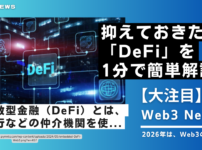 新着Web3ニュース 【Web3】デジタルアートのこれまでの歴史について、1分で簡単解説 内容 デジタルアートは1960年代から存在するが、技術や環境の制約で長く主流になれなかった。 インターネットやPhotoshopなどの普及により、デジタル創作は生活や文化と強く結びついた。 現在のデジタルアートは、NFT・AI・ジェネラティブ・3Dなど多様な手法が混ざり、明確な定義が難しい。 ブロックチェーンは流通手段であり、場合によっては作品のキャンバスとしても機能する。 反応・補足 しかし社会全体はまだWeb2中心で、Web3ベースのアートはニッチな市場に留まっている。 & ... 【Web3】2026年には抑えておきたい「DeFi」を、1分で簡単解説 内容 分散型金融(DeFi)とは、銀行などの仲介機関を使わずにブロックチェーン上で金融サービスを提供する仕組みです。 スマートコントラクトという自動プログラムによって、取引や貸し借りなどが自動で実行されます。 ユーザーは暗号資産を使って送金、取引、貸付、借入、報酬獲得などを行うことができます。 代表的なサービスには分散型取引所やレンディング、ステーブルコインなどがあります。 反応・補足 DeFiは24時間365日利用でき、インターネットとウォレットがあれば誰でも参加できます。 ... 【Web3】アメリカの「戦略的ビットコイン準備金」創設は、まだなのか!? 内容 Donald Trump大統領は2025年に「戦略的ビットコイン準備金」創設を指示したが、約1年経った現在も実際には設立されていない。 最大の理由は、準備金を正式に設けるには議会の立法が必要であり、政権だけでは権限が不足しているため。 ホワイトハウスと財務省は、専用口座や制度設計を作る法的権限が議会に依存すると認めている。 法案成立の最も現実的なタイミングは、2026年度の国家防衛授権法(NDAA)に組み込む案と見られている。 反応・補足 この法案は年末に必ず通過する大型 ... 【Web3】SuperRareは、NFTと暗号アートの画期的な新しいモデルを導入する 内容 SuperRareは、NFTを単なる投機商品ではなく文化的な暗号アート運動として育てるためのキュレーション型プラットフォームとして発展してきた。 2026年3月、同社は新しいジェネレーティブアートプロトコル「Liquid Editions」を公開した。 これは従来のERC-721ではなく、供給100万のERC-20トークンとしてアートを表現する仕組み。 トークンの取引、価格変動、流動性など市場データがリアルタイムでアートのビジュアルを生成する。 反応・補足 アートは「ビジ ... 【Web3】企業がコストを理由に、給与にステーブルコインを使い始めている 内容 企業は国際送金の速さ・低コストを理由に、従業員給与にステーブルコインを使い始めている。 調査では仮想通貨ユーザーの約39%がステーブルコイン収入を得ており、平均で収入の35%を占める。 USDCやUSDTなどにより、企業は給与資金を数秒で国境を越えて送金できる。 暗号給与の導入は拡大しており、企業利用は2023年15%→2025年25%以上、2026年には35〜40%が試験導入すると予測されている。 反応・補足 ステーブルコインは価格が法定通貨に連動するため、ボラティリテ ... おすすめ記事 NFTを買う『3STEP』 STEP1:仮想通貨に両替 続きを見る STEP2:ウォレット作成 続きを見る STEP3:NFT選んで購入 続きを見る 評判記事 NFTの買い方 続きを見る Coincheckの口座開設方法 続きを見る Coincheckで仮想通貨購入 続きを見る author