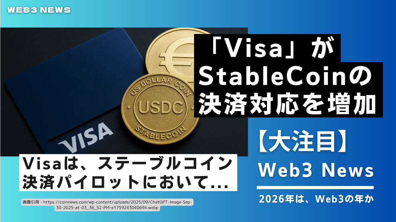 【Web3】「Visa」が、ステーブルコイン決済の対応チェーンを5つ増加