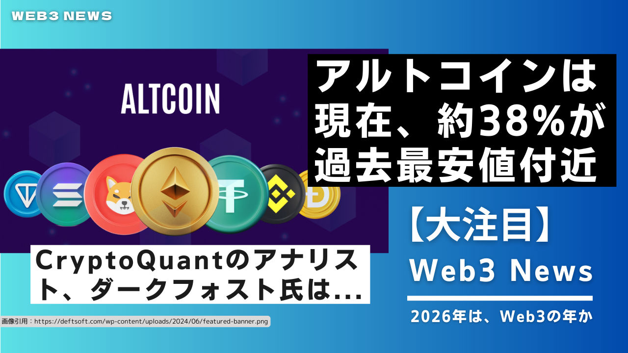 CryptoQuantのアナリスト、ダークフォスト氏は、現在アルトコインの約38%が過去最安値付近で取引されていると指摘。