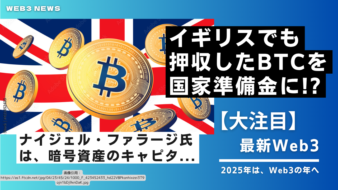 押収された約6万1,000BTC(約50億ポンド)を原資に国家準備金を創設する計画も掲げる。
