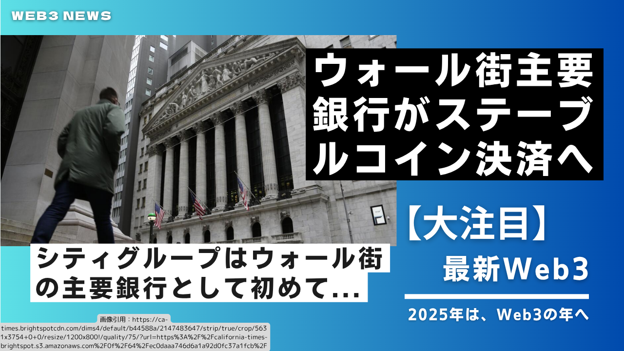 シティグループはウォール街の主要銀行として初めて、ステーブルコイン決済サービスの導入を検討している。