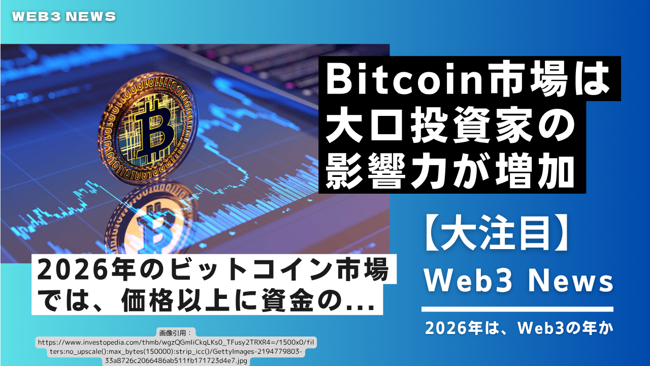 2026年のビットコイン市場では、価格以上に資金の質の変化が顕著となっている。