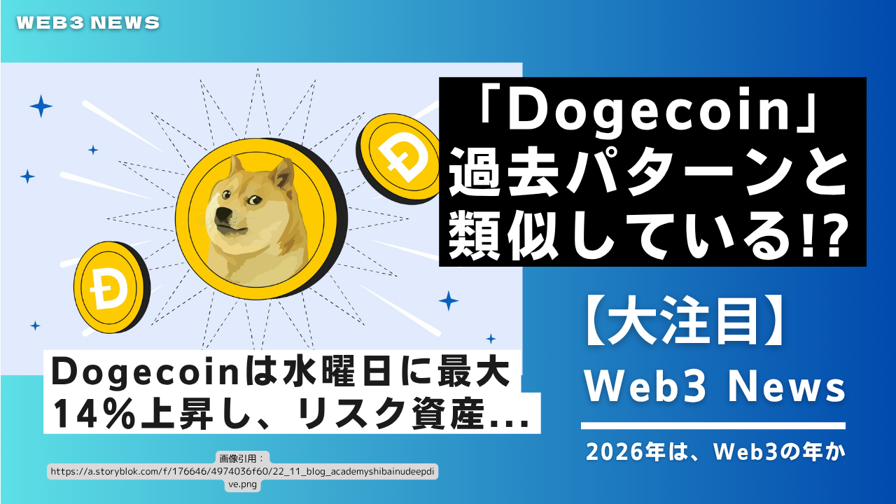 Dogecoinは水曜日に最大14%上昇し、リスク資産の反発局面を主導。
