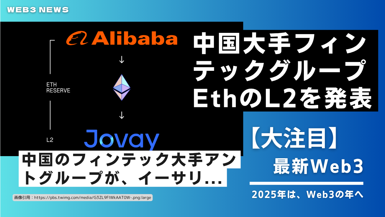 中国のフィンテック大手アントグループが、イーサリアム基盤の新レイヤー2ブロックチェーン「Jovay(ジョベイ)」を発表。