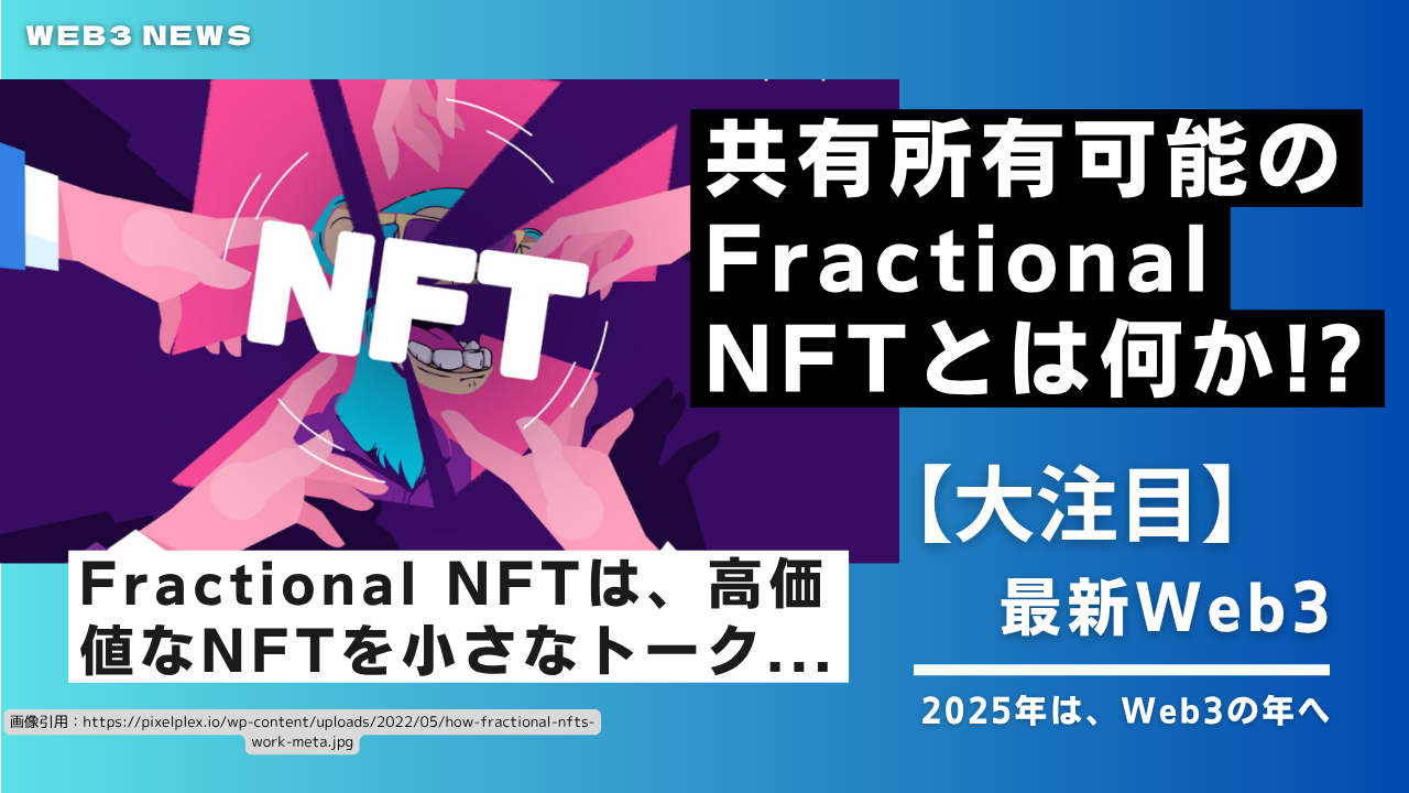 Fractional NFTは、高価値なNFTを小さなトークン単位に分割し、共有所有を可能にする仕組みです。