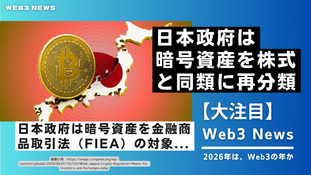 【Web3】日本政府は、暗号資産を株式同様の法的地位に再分類