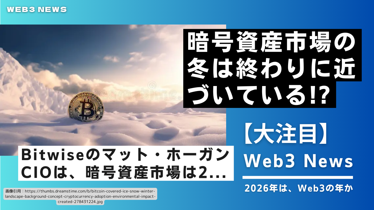 Bitwiseのマット・ホーガンCIOは、暗号資産市場は2025年1月以降すでに「本格的な冬」に入り、現在は終盤に近づいていると指摘。
