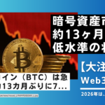 2025年10月に12万6000ドルの史上最高値を記録後、下落トレンドが継続中。