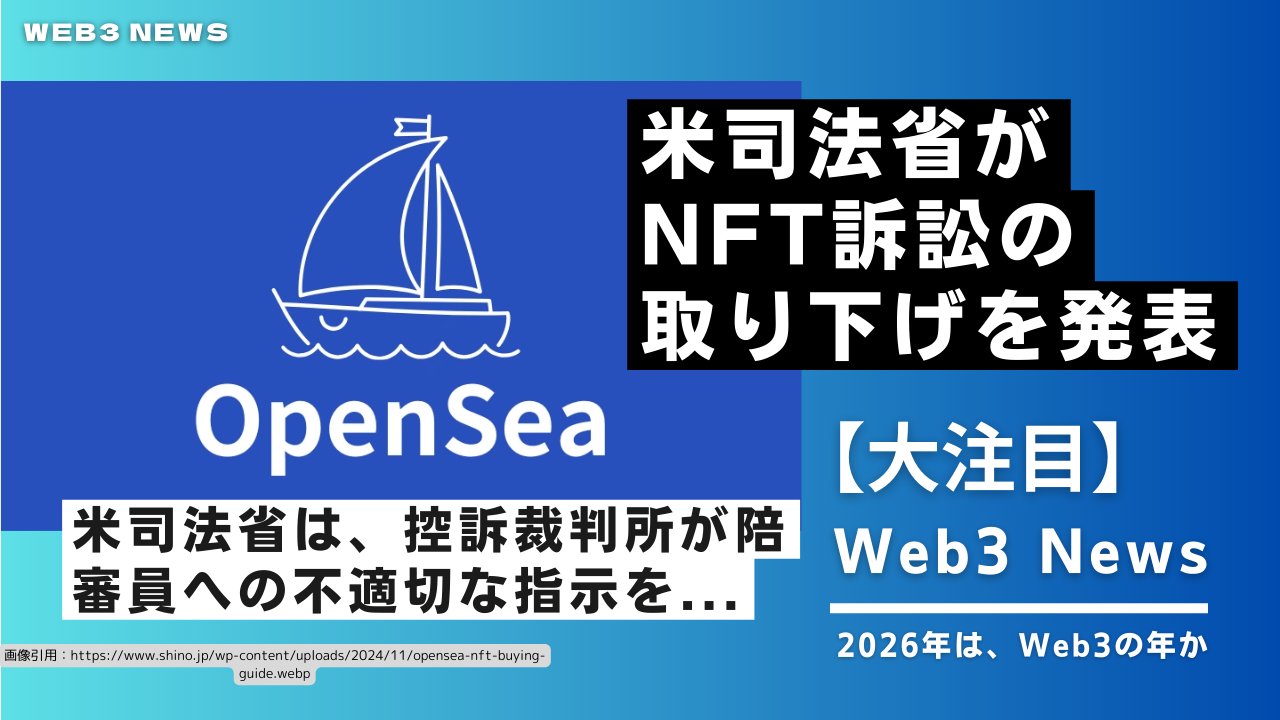 米司法省は、控訴裁判所が陪審員への不適切な指示を理由に有罪判決を覆したことを受け、OpenSea元マネージャーのナサニエル・チャステイン氏に対するNFTインサイダー取引訴訟を取り下げた。
