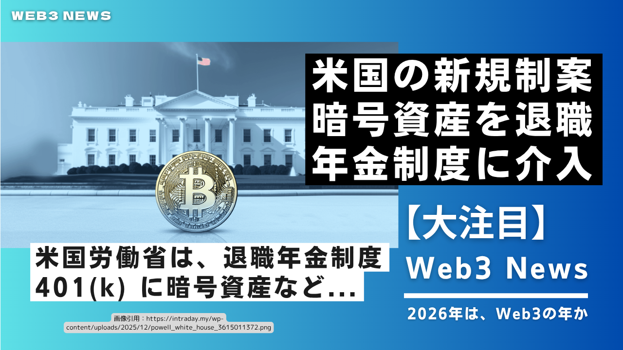 【Web3】米国の新規制案で、暗号資産を退職年金制度に組み込む可能性アリ