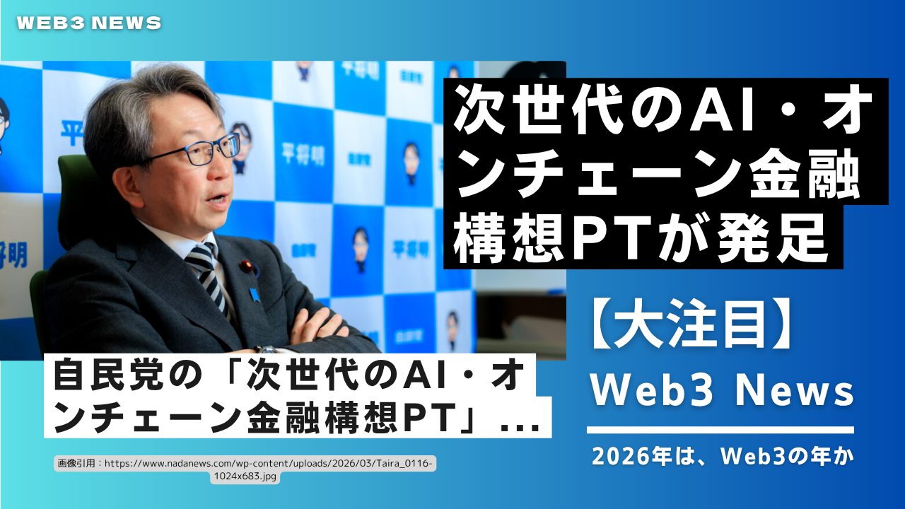 自民党の「次世代のAI・オンチェーン金融構想PT」が発足し、金融機能を統合した新たな金融システムの全体像の検討が始まった。