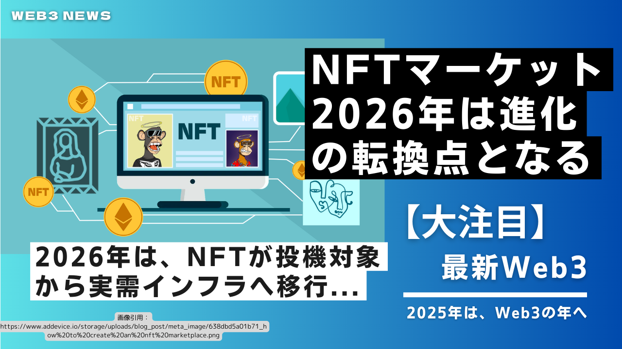 2026年は、NFTが投機対象から実需インフラへ移行する転換点となり、マーケットプレイスの役割が中核化する。