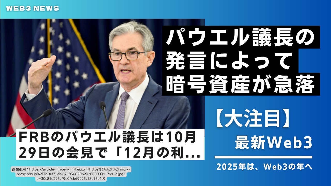 【Web3】FRBパウエル議長の発言により、暗号資産市場は急落!?
