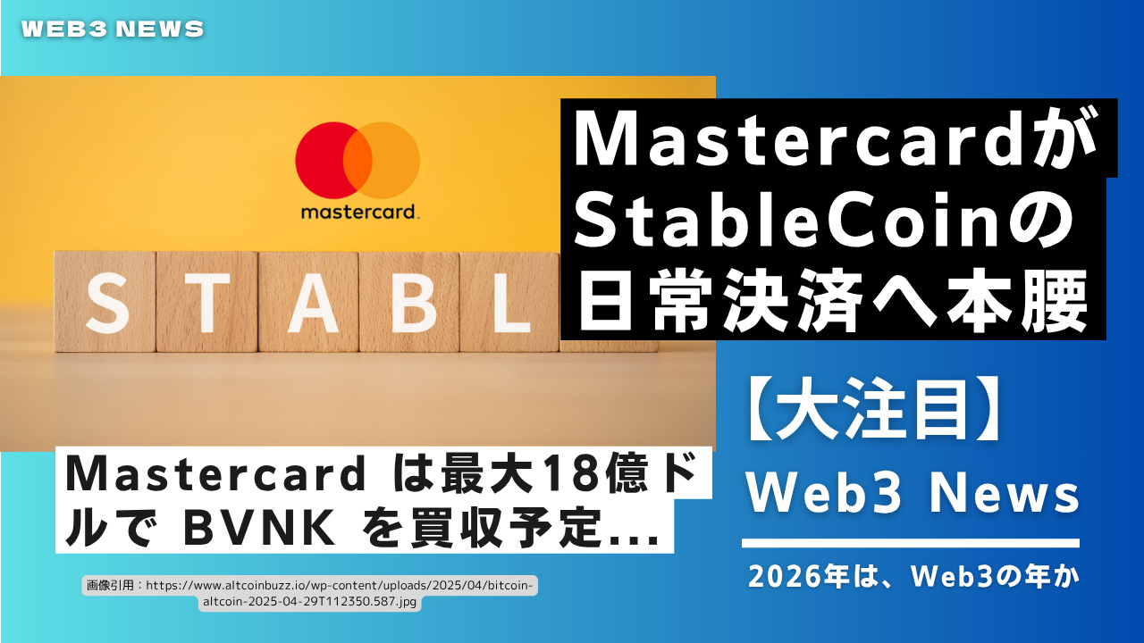 Mastercard は最大18億ドルで BVNK を買収予定で、ステーブルコインを日常決済へ統合する狙い。